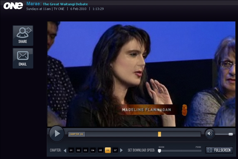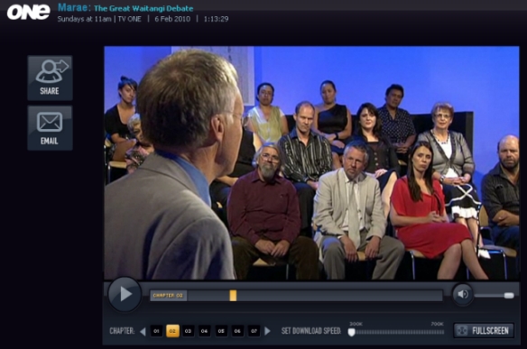 For those of you who slept in, got the time wrong or who just don’t get TV One because you don’t live in New Zealand, click on the link to watch “Marae: The Great Waitangi Debate,” as screened on national television this morning.